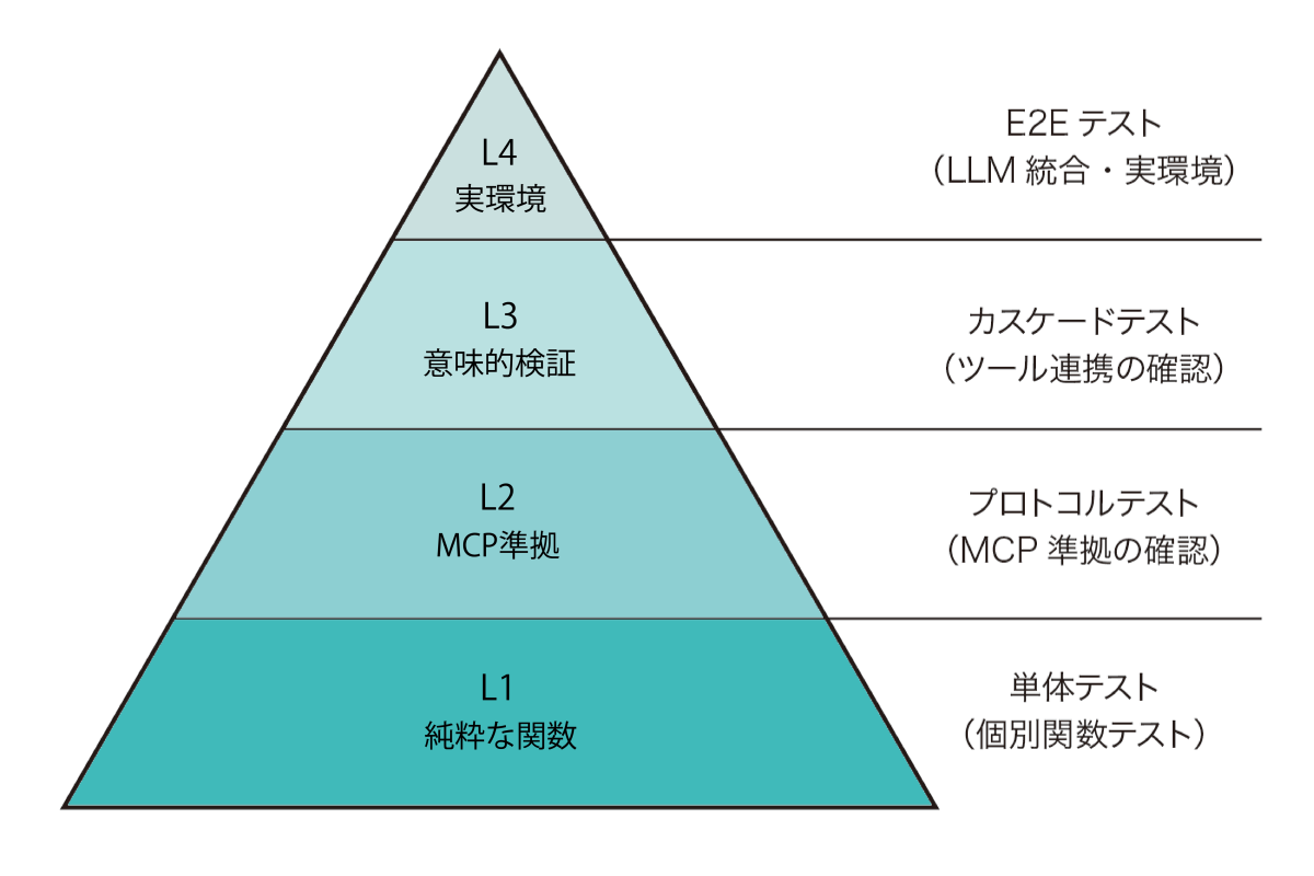 L1からL3まではLLMを介在させないことで非決定性の影響を排除しつつ、L4ではテストの成功確率を指標とする概念を導入しました。