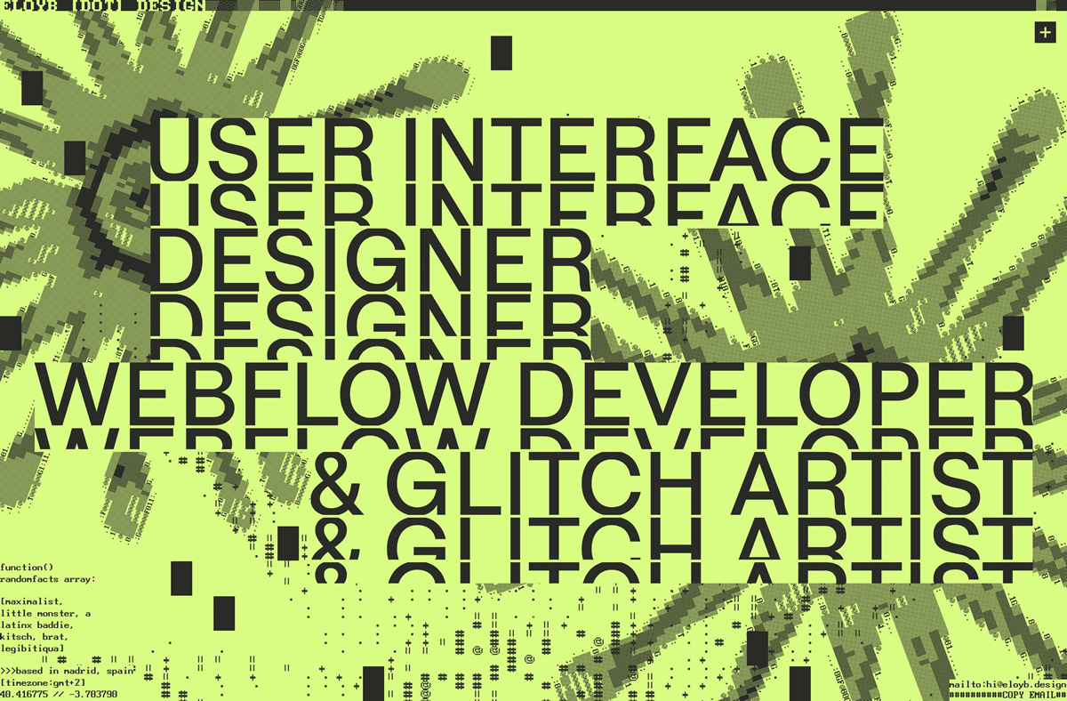 図37 スペイン・マドリード在住のアルゼンチン生まれのフリーランスUIデザイナー/Webflowデベロッパー/Glitch Artist、Eroyb(Eloy Benoffi)のポートフォリオサイト