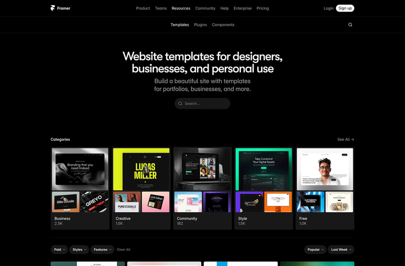 図58 ノーコードのウェブサイト構築ツール「Framer」の「Framer Marketplace」で販売されているウェブサイトのテンプレートは、近年のデザイントレンドを取り入れたものが多い。1週間に一度更新される「CodePen Spark」や、JavaScriptライブラリー「GSAP」の「GSAP Showcase」も、ウェブサイトでのアイデア実装の参考になる