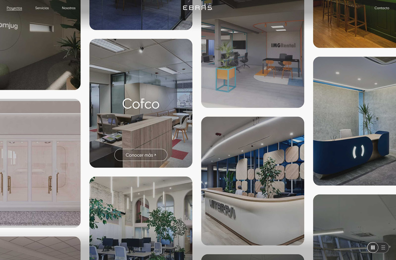 図46 企業・商業建築やインテリアデザイン、オフィスデザインを専門とする、アルゼンチン・ロサリオのデザインスタジオ、EBRASのウェブサイト(Credits: UNKNOWN, Emiliano Tomas, Julian Peroncini)