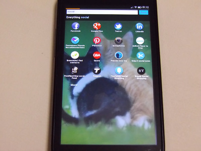 たとえば、Facebookにアクセスする場合は、ホーム画面を一番左まで、フリックして、各サイトのショートカットが集められた画面を表示します。その中の「Social」をタップすると、ソーシャルネットワークへのショートカットが表示されるので、その中から「Facebook」をタップします。