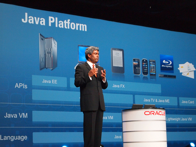 2日目の午後、JavaOneとしてのキーノートが開催された。スピーカーはOracle Executive Vice President, Thomas Kurian氏。Oracleが考えるJava、そしてJavaコミュニティに向けたOracleからのメッセージを聞くことができた。