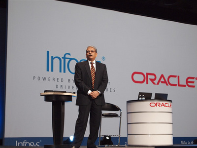 Infosysの講演に続いて、Larry Ellison氏が登壇した。
