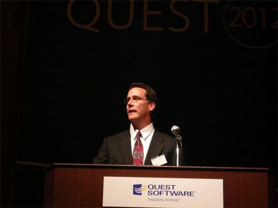 セミナーの最初に登壇したのは米国Quest Software社(以下、Quest)でワールドワイドセールスを担当しているMatt Vitale氏。Quest全体の2011年度の実績と今後の事業戦略や展開について語った。