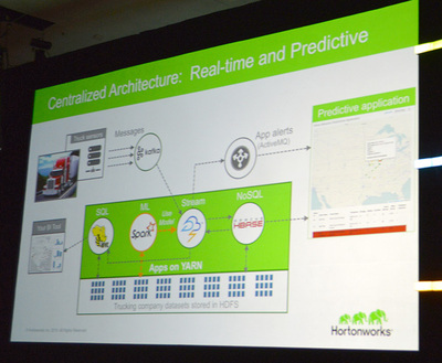 より正確にいえば、Hadoopによるデータ分析がビジネスに"トランスフォーメーション"となる大きな転換を迫っていると表現できます。冒頭で紹介した"データオペレーティングシステム"のコンセプトについて語ったマーシー氏は「現在はリソースとして価値があるのはハードウェアではなくデータ」と強調、そのデータ分析を速く正確に行える企業こそがトランスフォーメーションに成功できるとしています。しかもそのデータ分析は単なるバッチ処理ではなく、現在では「リアルタイムかつプレディクティブが主流」( マーシー氏)とのこと。絶え間なく流れてくるストリームデータをリアルタイムに分析し、それをもとに直近の未来を予測するというニーズは、昨今のIoTや機械学習のブームとも深く結びついており、すでに特定の業界の特定の企業だけに求められるニーズではなくなってきているとマーシー氏は言います。